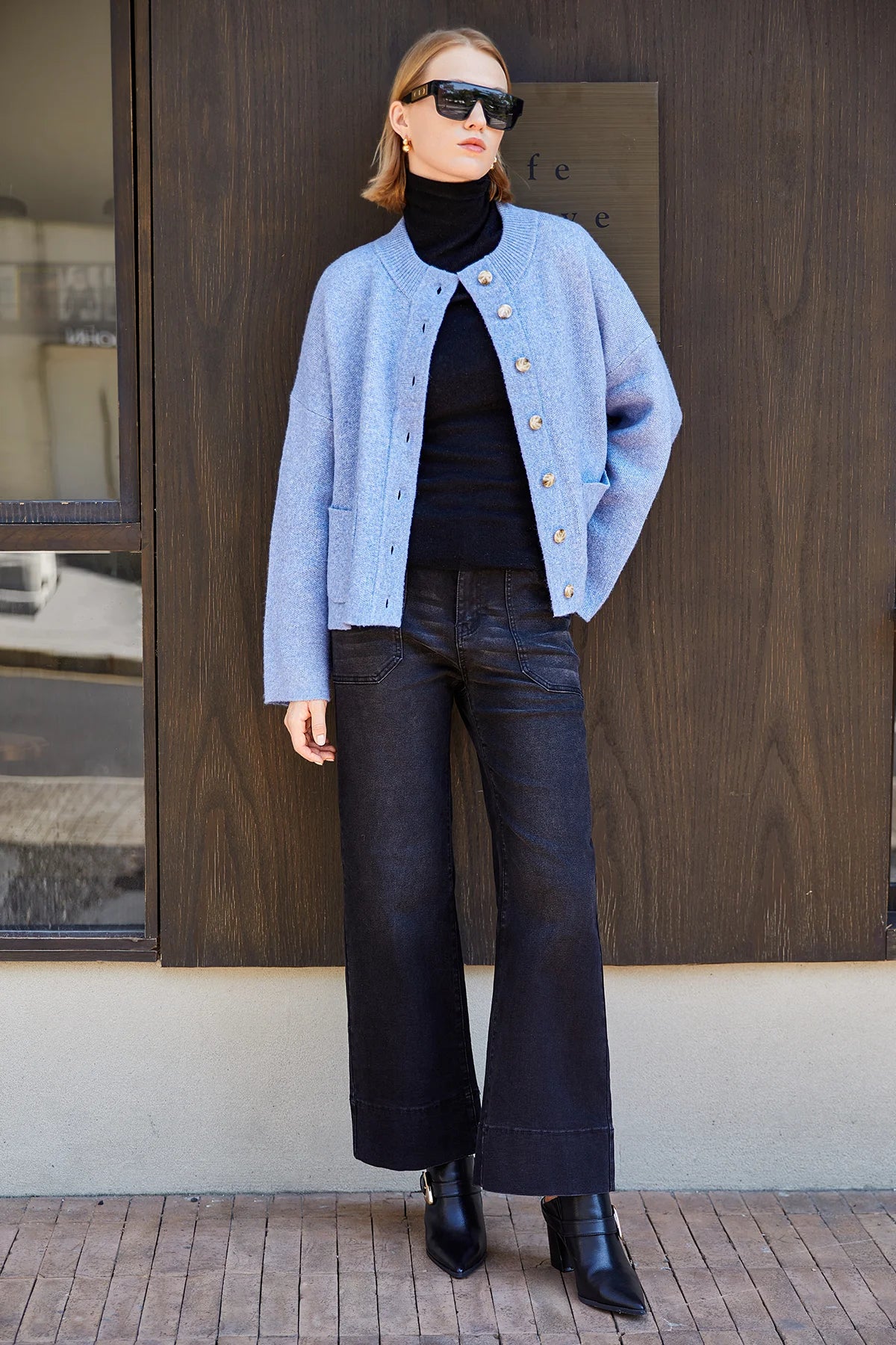 Cicy Bell Womens Black Wide Leg Jeans discover ultimate comfort and style. Featuring a soft, high-waisted design with stretchy elastic for a supportive fit, these vintage-inspired barrel jeans offer a relaxed, flattering silhouette. Designed with functional pockets and a cropped flare leg, they pair effortlessly with blazers, sneakers, and more. Perfect for casual outings, work, or nights out, these jeans combine feminine charm with everyday versatility.