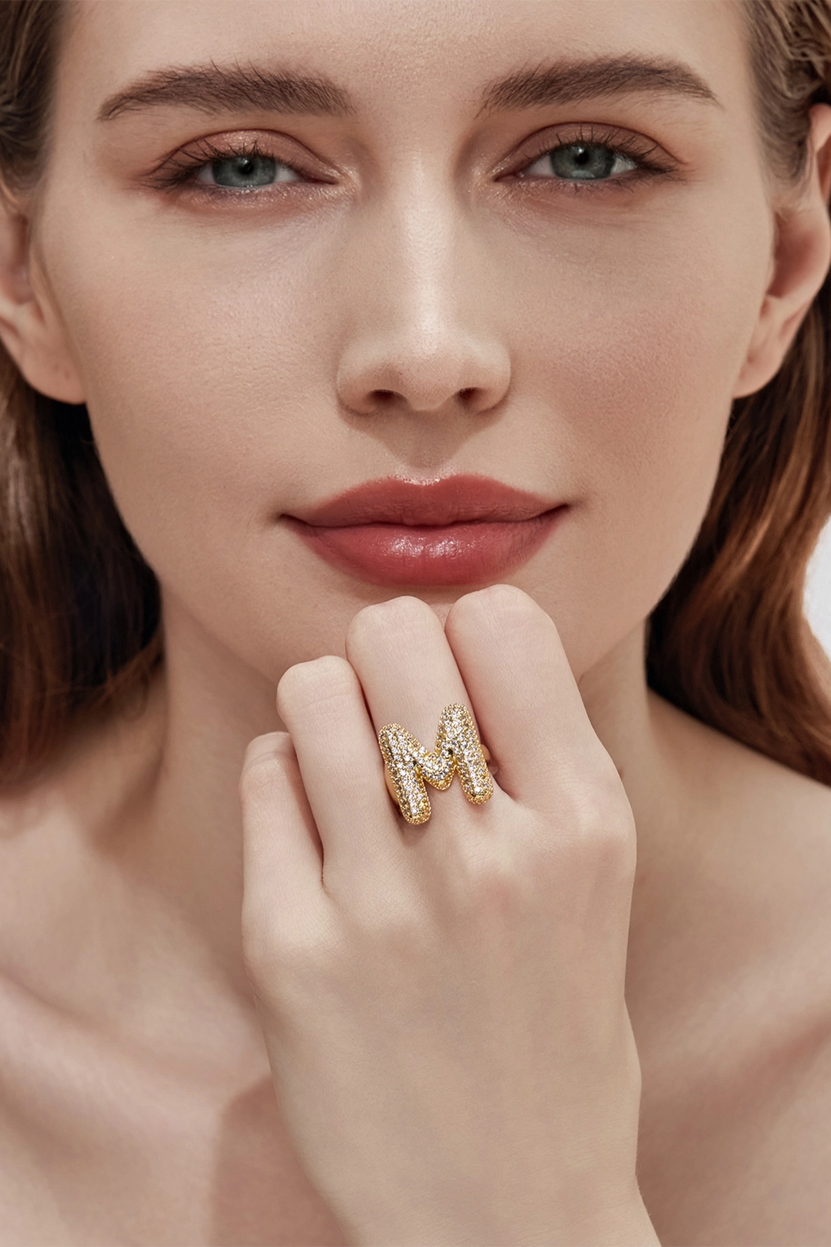 Description: Elevate your everyday style with our 14k Gold Plated Letter M Initial Ring. Featuring sparkling cubic zirconia and a trendy open design, this adjustable ring offers a comfortable fit for any finger. It represents a perfect blend of personalization and luxury, making it an ideal thoughtful gift for her or a signature piece for your own jewelry collection.
