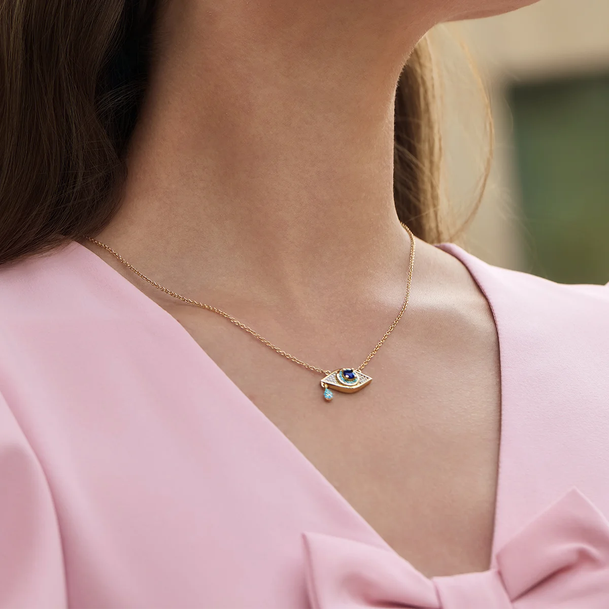 Cicy Bell Womens Yellow Gold Evil Eye Necklace