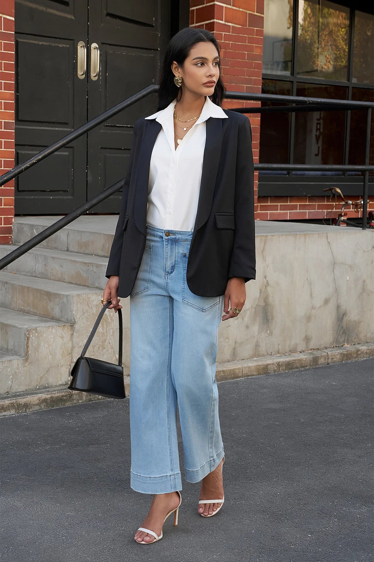 Womens Light Blue Cropped High Waisted Jeans | CicyBell