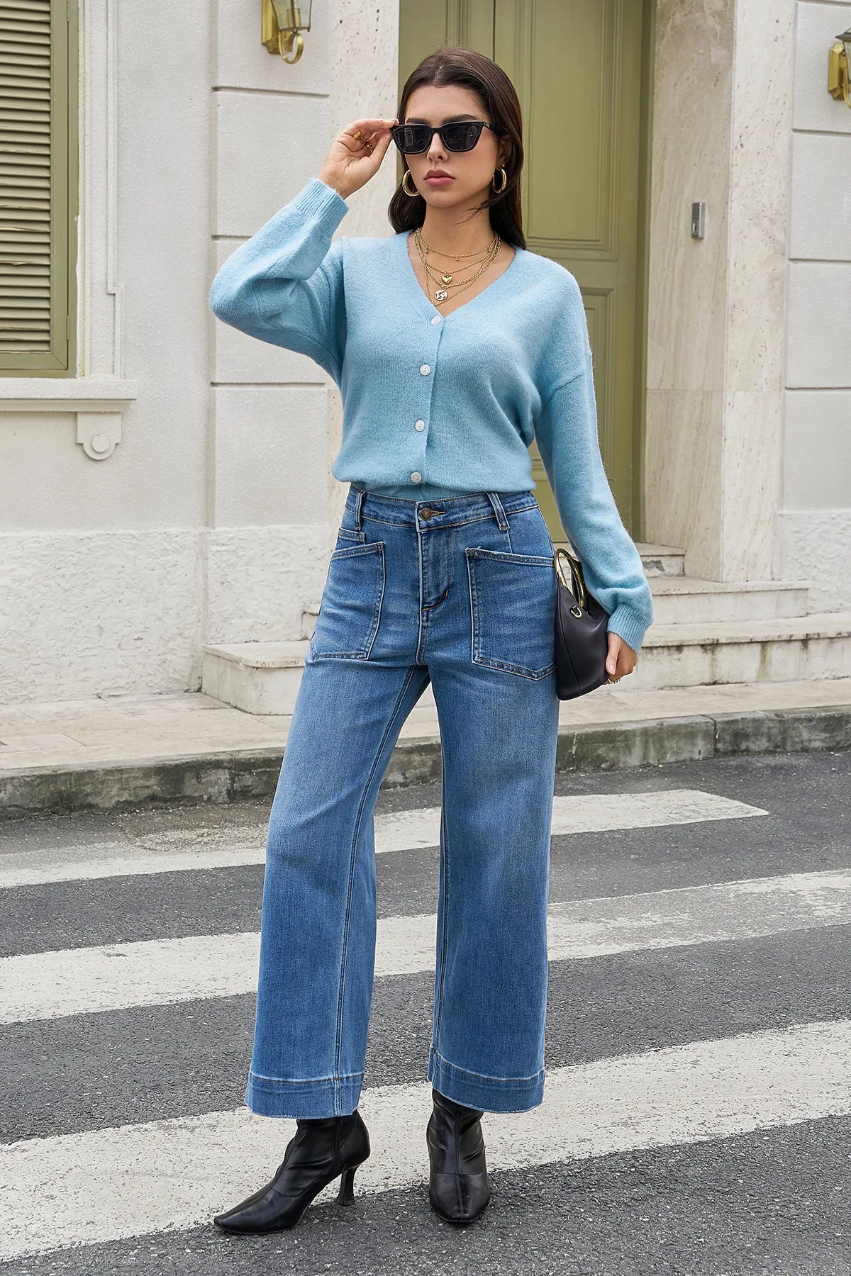 Womens Wash Blue Cropped High Waisted Jeans | CicyBell
