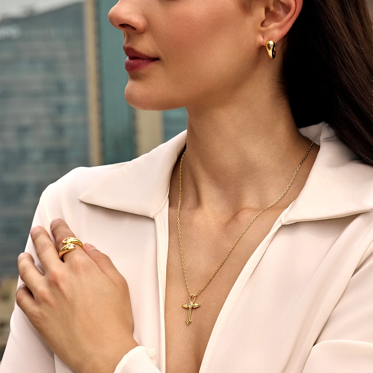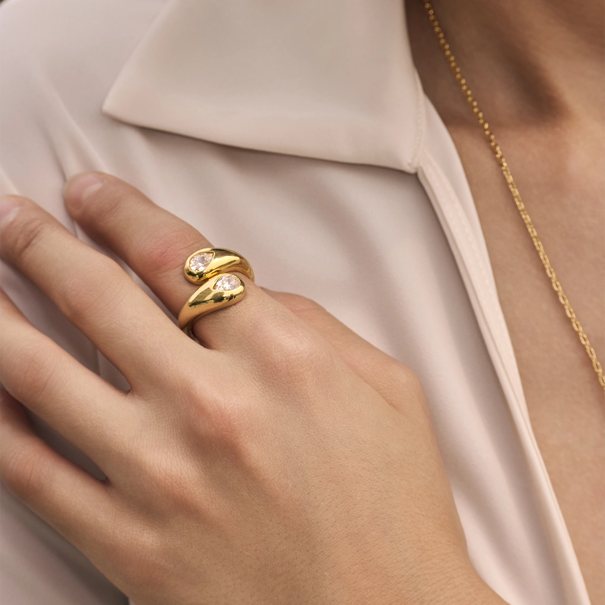 Adorn your hand with the CicyBell Gold Cut Teardrop Ring, a stunning jewelry piece designed to amplify the elegance and confidence of the modern woman. This luxurious ring is plated with high-luster 18K gold and centered around a magnificent synthetic Teardrop Cubic Zirconia (CZ), offering premium sparkle perfect for any occasion. The innovative Opening Design ensures a versatile and comfortable fit for various finger sizes, while the inner ergonomic arc makes it exceptionally comfortable for long-term wear. Whether treating yourself or searching for an Excellent Gift for birthdays or holidays, this beautifully packaged ring is a sophisticated choice.