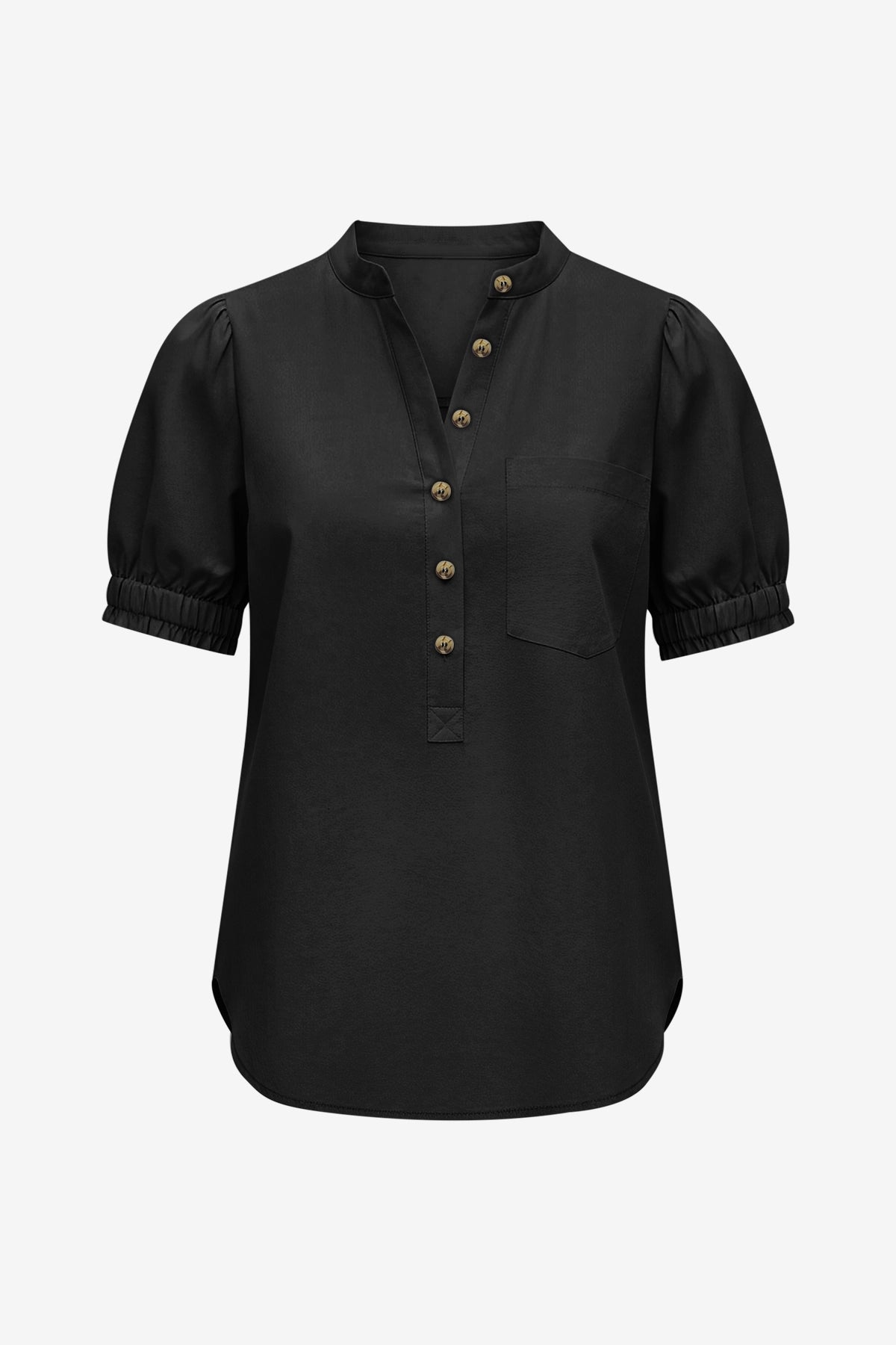 Womens Black Puff Short Sleeve Blouses | CicyBell