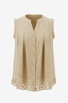 Stay cool and chic with the CicyBell Summer Eyelet Tank Top. Crafted from 100% pure cotton, this breathable button-down top features intricate hollow-out eyelet embroidery and a playful ruffle hem. Its loose, airy fit makes it the ultimate choice for sweltering summer days, offering a delicate bohemian aesthetic that pairs perfectly with your favorite denim or skirts.
