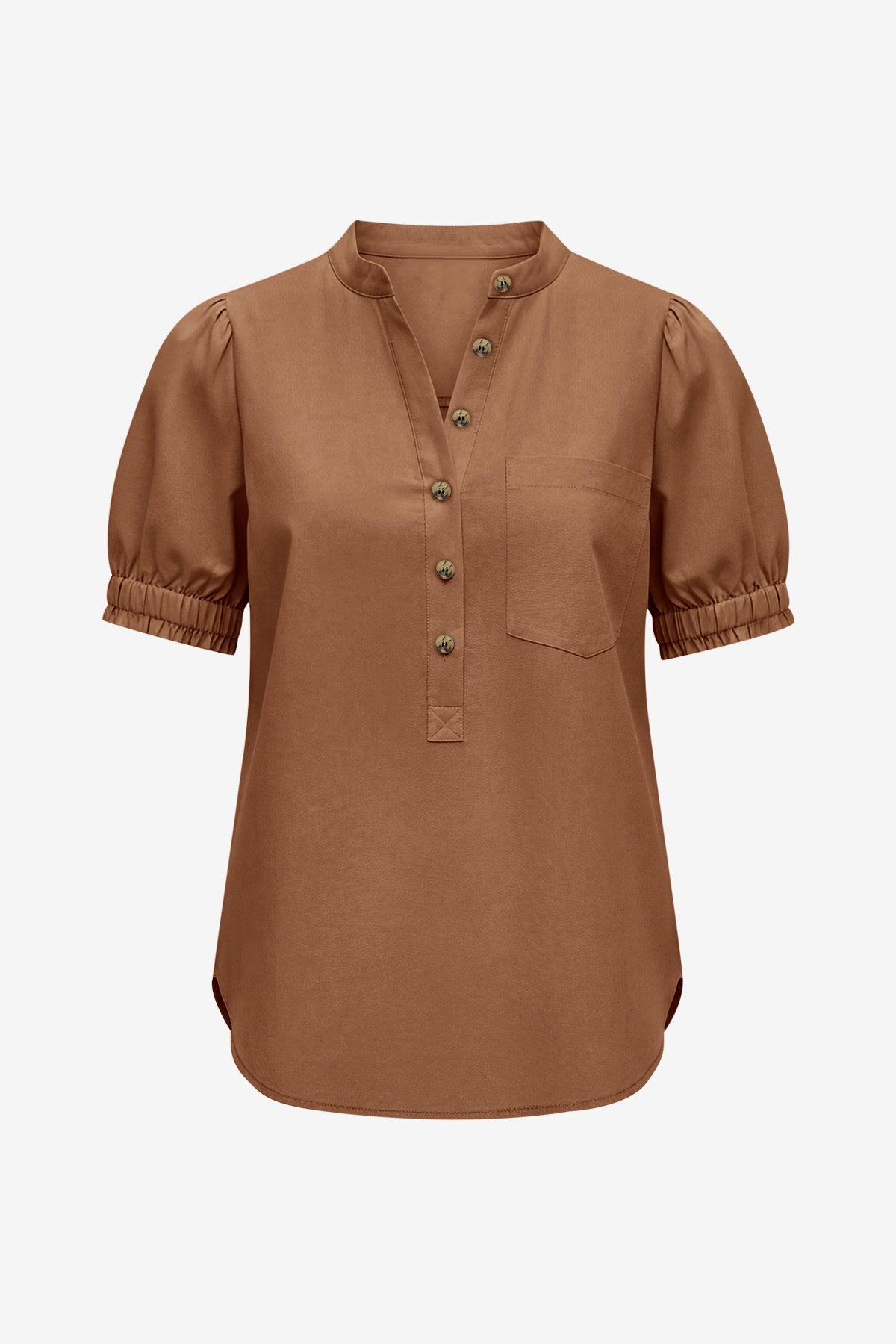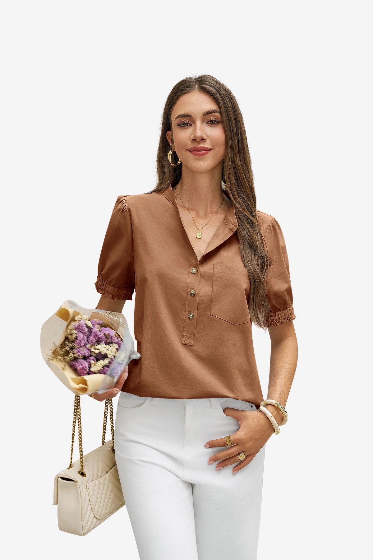 Womens Brown Puff Short Sleeve Blouses | CicyBell