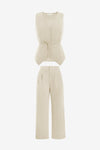 Description: Elevate your "Power Suit" game with this Cicy Bell 2-Piece Vest Set. Combining a tailored sleeveless blazer with breezy, wide-leg trousers, this outfit is the ultimate expression of modern sophistication. The adjustable tie-waist allows you to define your silhouette, making it as flattering as it is comfortable—perfect for those days when you want to look like the boss while feeling like you're in loungewear!