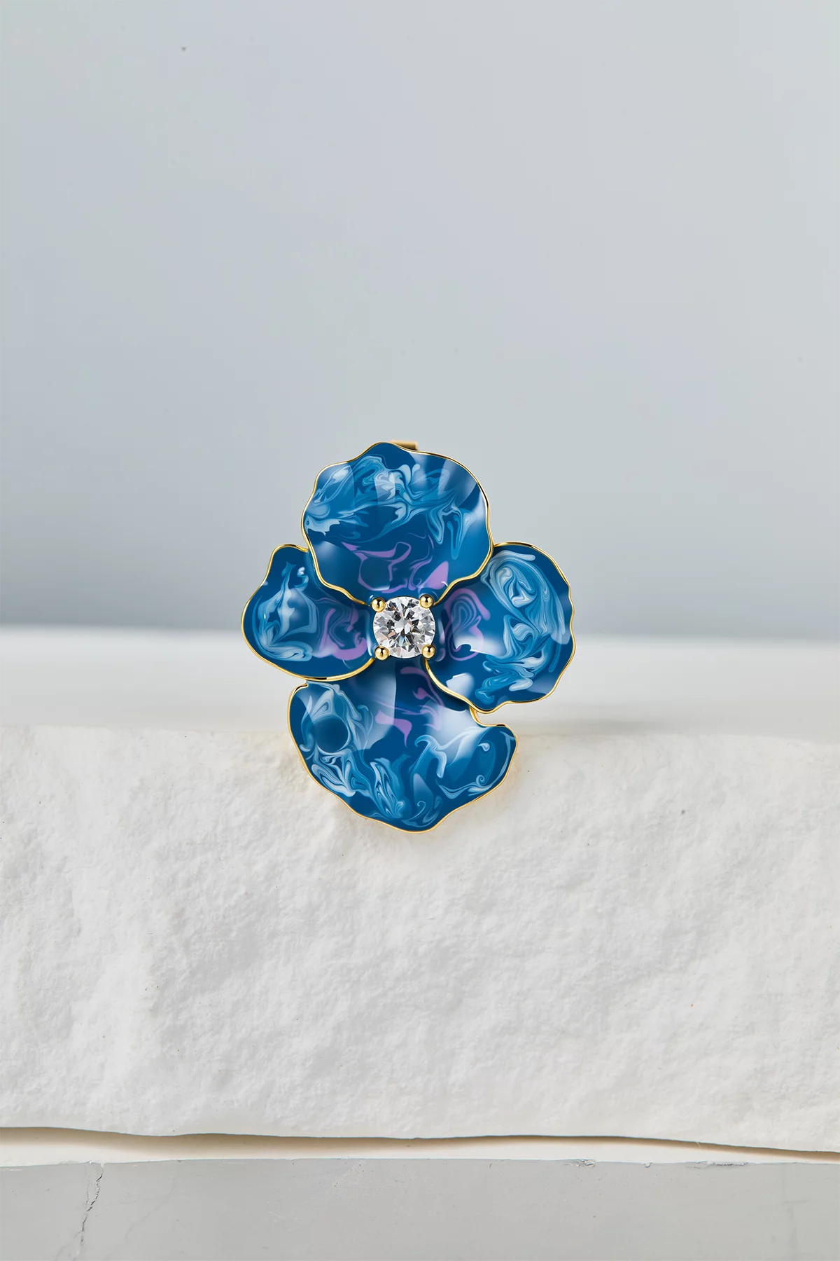 Elegant stud earrings inspired by spring irises, featuring 18k gold-plated brass for lasting shine and comfort. Petals showcase vibrant gradient blue-purple enamel for artistic dimension, while cubic zirconia stamens add dazzling sparkle. Hypoallergenic and perfect for daily wear, these nature-inspired accessories capture romantic elegance.
