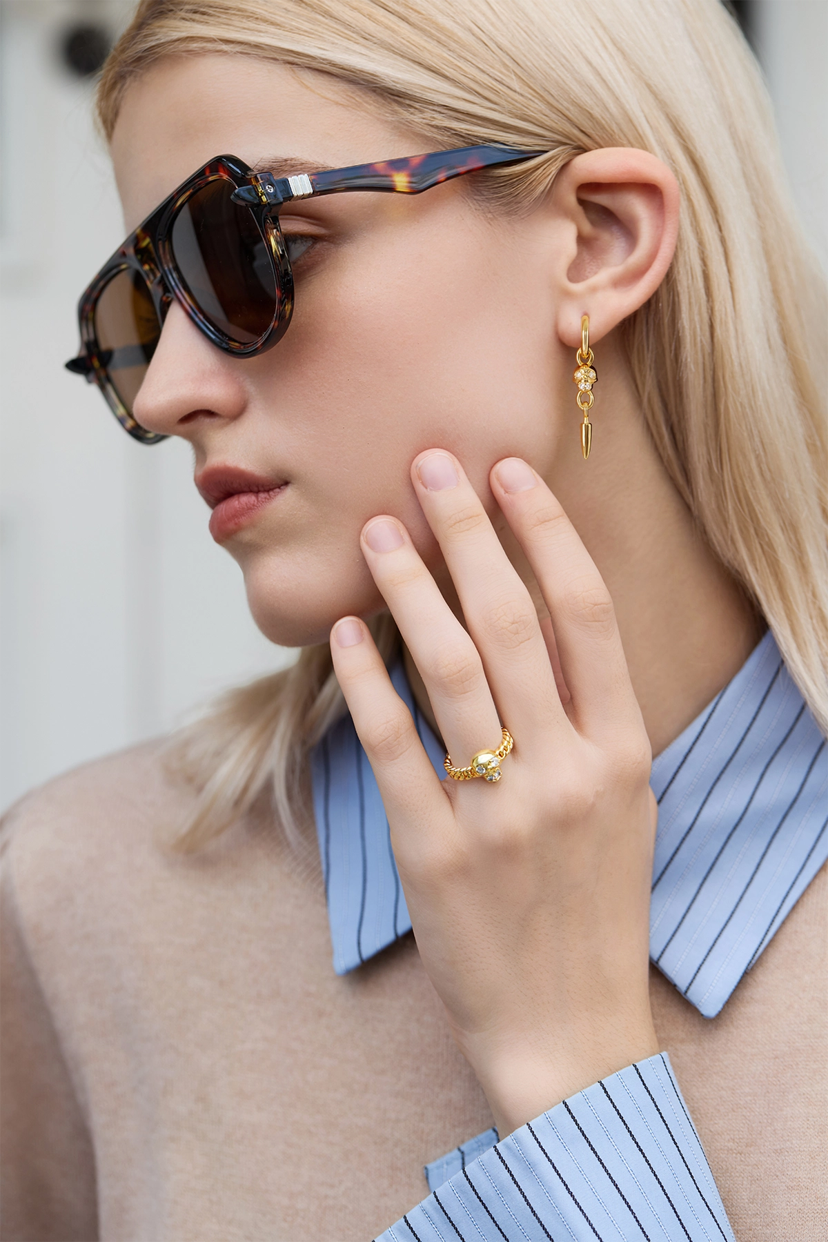 Womens Gold Skull Dangle Hoop Earrings | CicyBell