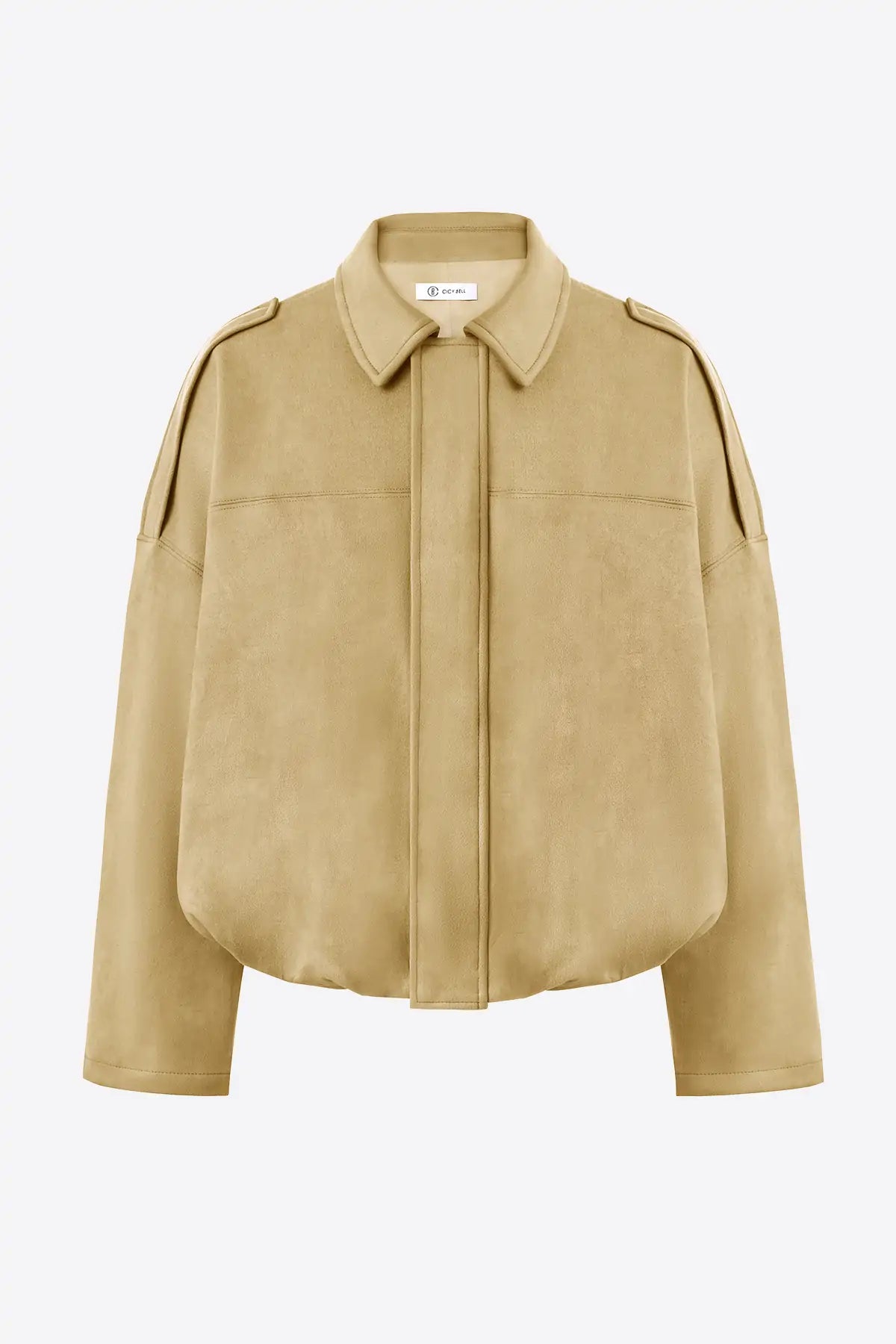 The Cicy Bell Women’s Faux Suede Bomber Jacket is a cropped oversized coat perfect for fall. Made of premium faux suede, it offers comfort and cool style. Key features include a lapel collar with zipper closure and classic solid-color design. Ideal for casual occasions: travel, work, streetwear, shopping, cycling, or hanging out with friends.