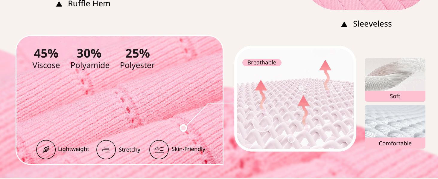 Premium Knit Blend: 45% Viscose, 30% Polyamide, 25% Polyester.