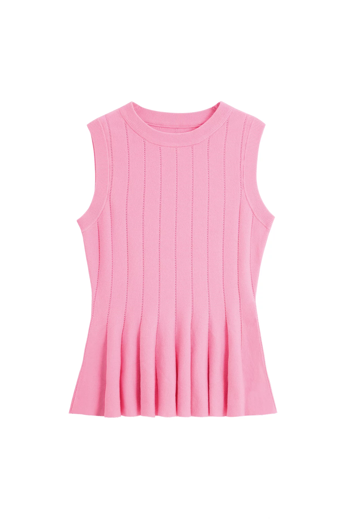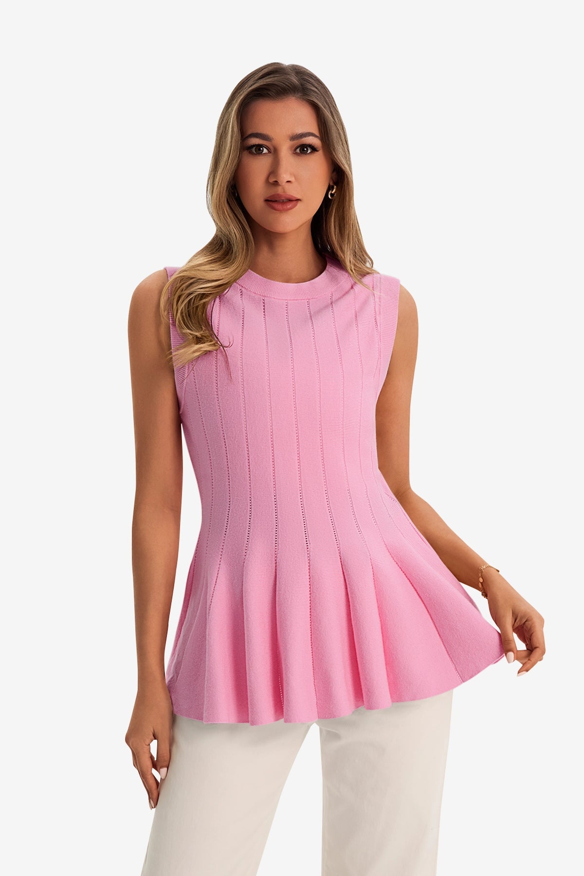 Womens Pink Pleated Peplum Tank Tops | CicyBell