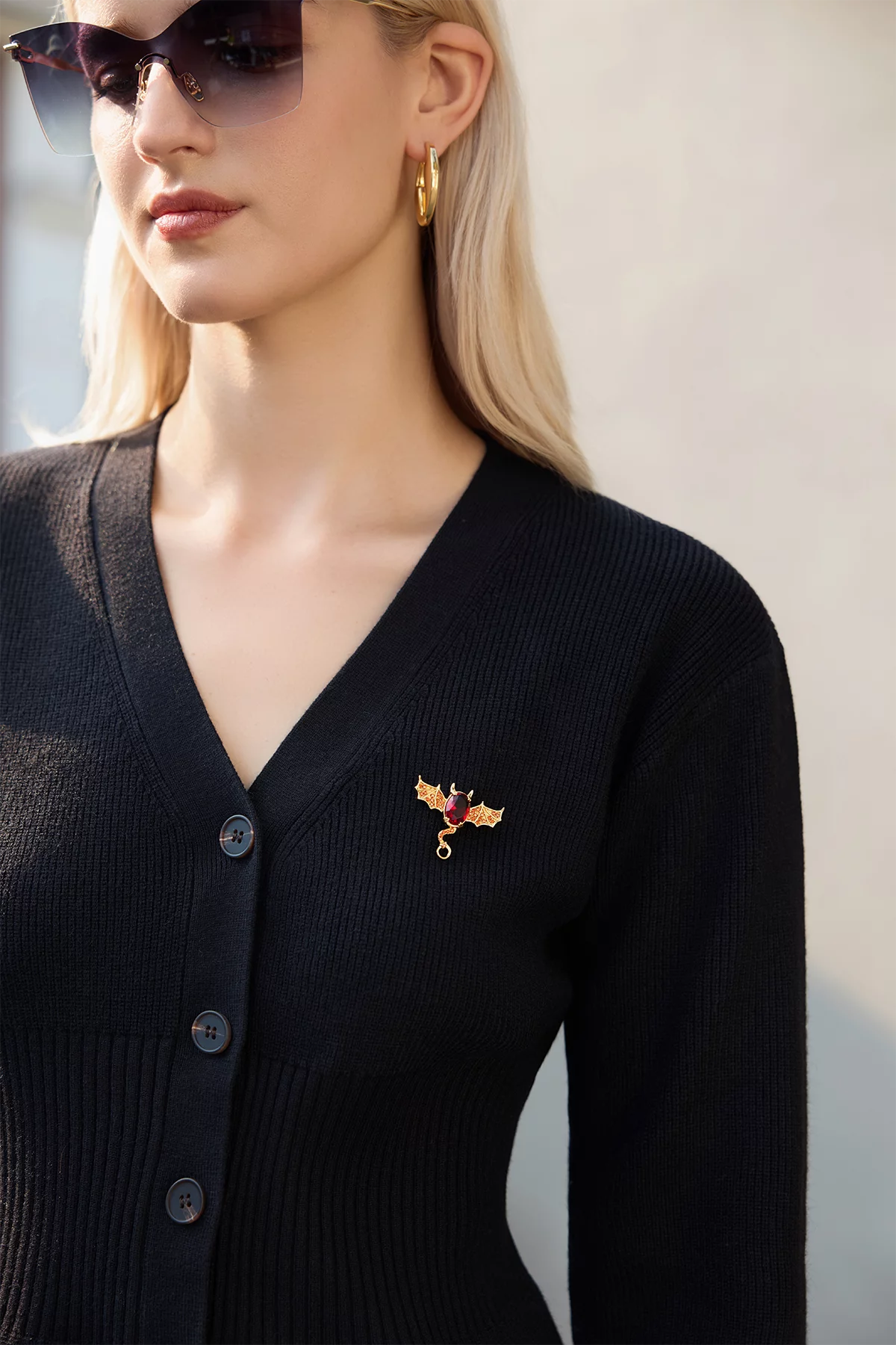 Cicy Bell presents a stylish Gothic bat brooch pin, plated in 18K gold. Featuring an oval gemstone symbolizing wisdom and nobility, it’s adorned with shimmering crystal rhinestones. The outstretched bat wings add edgy punk-gothic flair. Perfect for Halloween events, parties, or daily wear—effortlessly elevates outfits.