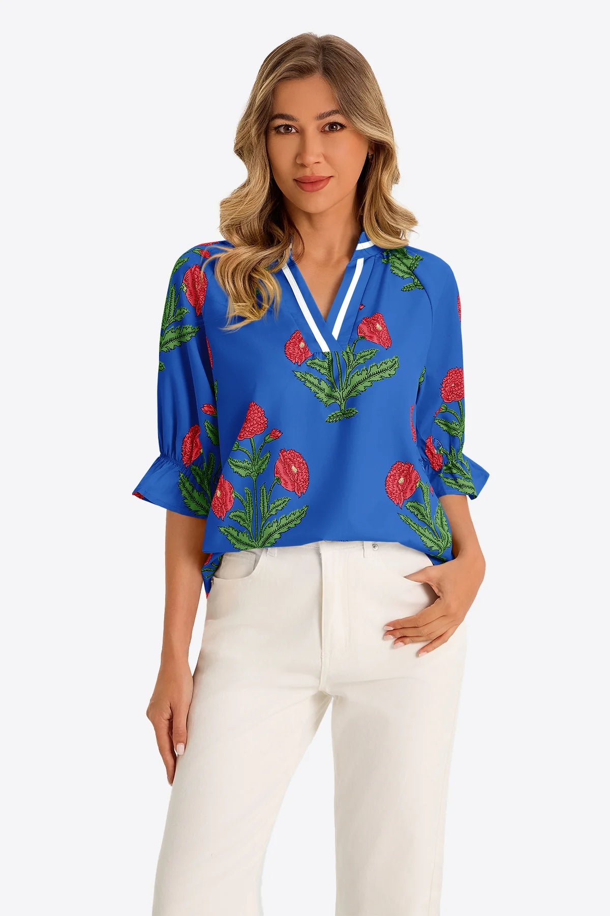 Elevate your seasonal wardrobe with this CicyBell Womens Boho Floral Blouse. Featuring a romantic V-neck and trendy half puff sleeves, this top blends feminine charm with a modern silhouette. The breathable, relaxed fit ensures all-day comfort, making it the perfect boho-chic staple for effortless styling from office to weekend outings.