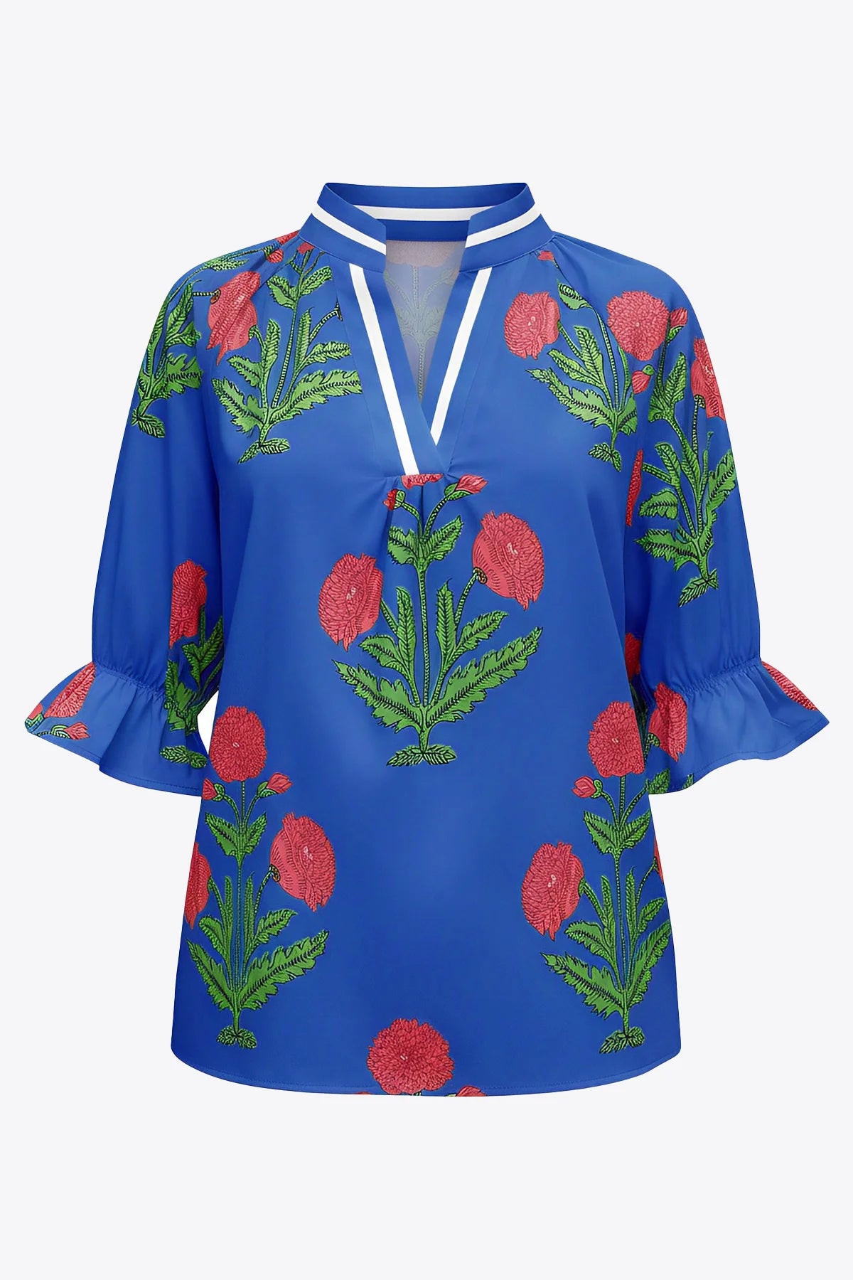Womens Royal Blue Boho Floral Blouses | CicyBell