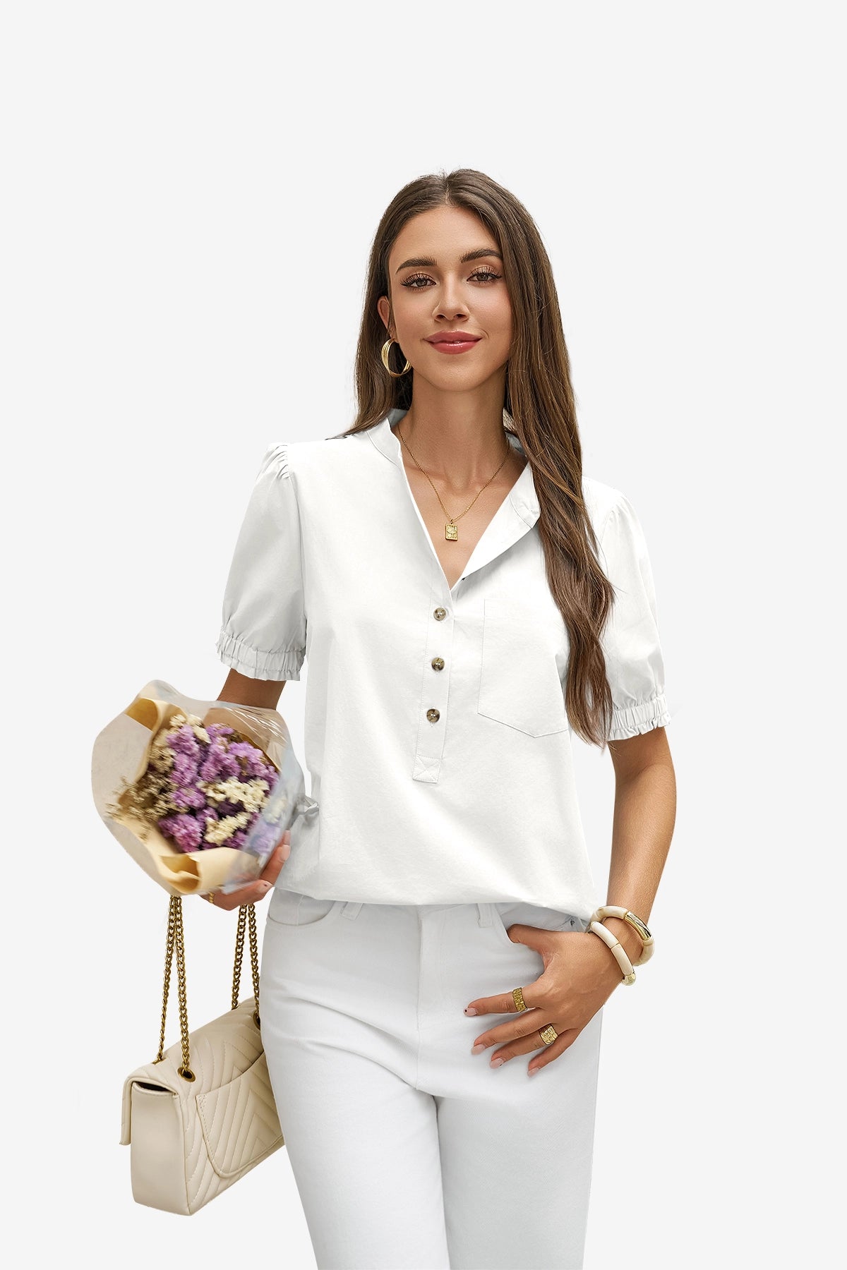 Elevate your seasonal wardrobe with the CicyBell Puff Sleeve Blouse. Crafted from 100% breathable cotton, this sophisticated top combines a classic button-down front with romantic puff sleeves for a look of modern elegance. Its loose-fit silhouette offers a polished yet effortless vibe, ensuring you stay confident and cool from the office to your weekend brunch.